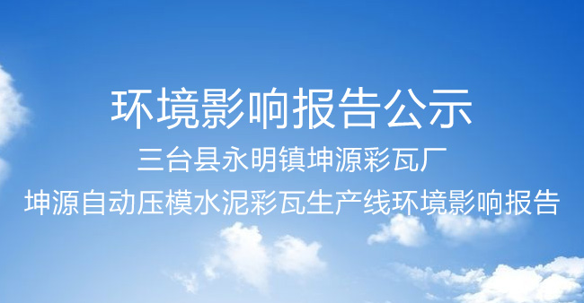 三臺縣永明鎮(zhèn)坤源彩瓦廠坤源自動壓模水泥彩瓦生產(chǎn)線環(huán)境影響報(bào)告表全文信息公示