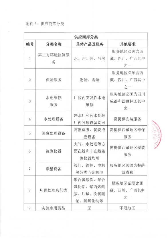 為規(guī)范西藏國策環(huán)??萍脊煞萦邢薰荆ㄒ韵潞喎Q國策環(huán)?;蚬荆┎少徯袨?,加強采購管理,維護公司采購當事人的合法權益,更好地與廣大供應商合作,依據公司采購管理、供應商管理有關制度的規(guī)定,公司現征集采購供應商入庫登記,以建立規(guī)范完整的供應商信息庫。歡迎各企業(yè)(供應商)踴躍入庫,現將有關事宜通知如下: