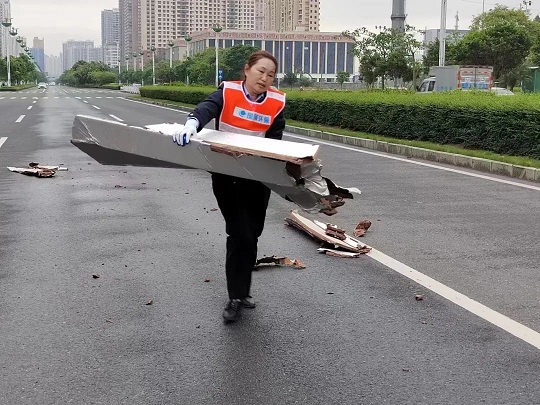 每年夏天臺風(fēng)天氣,暴雨過后,大量的泥沙、淤泥堆積在道路上,影響行人和車輛的通行。每當(dāng)這種時(shí)候禤艷輝總是身先士卒,帶領(lǐng)分公司一線工人排沙清道,第一時(shí)間將路面沙、泥、垃圾全部清掃干凈。