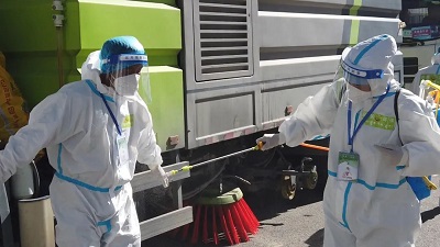 疫情期間,國策一線環(huán)衛(wèi)工人們要從早上七點忙到晚上8點,在全市范圍內(nèi)進行保潔工作,總保潔面積達201萬平方米。同時,還要通過機械作業(yè),利用機掃車和灑水車聯(lián)合作業(yè),對市內(nèi)道路進行全域洗城降塵、消殺。