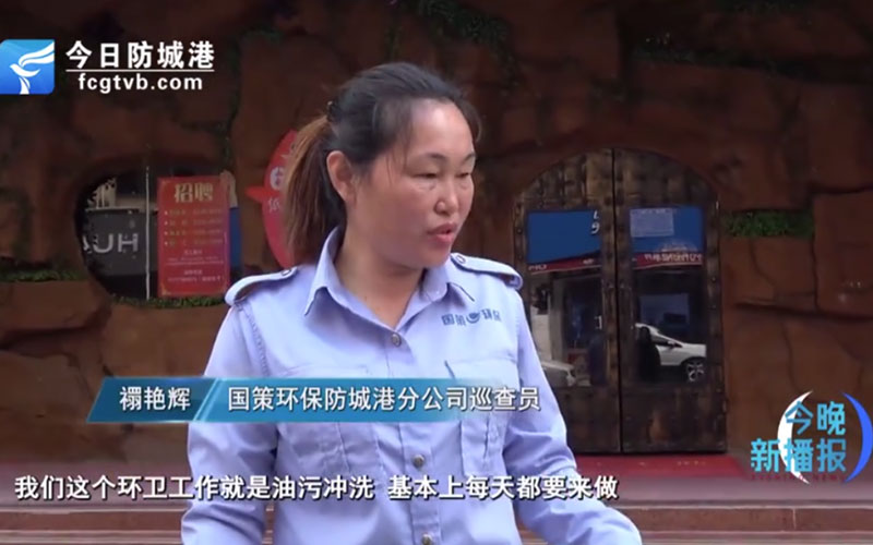 國策環(huán)保防城港分公司巡查員 禤艷輝:(你獲得全國這個獎有什么感想?)沒有什么(感想),感覺挺榮幸的,想都沒想到。(那現(xiàn)在獲得這個獎有什么打算?)打算繼續(xù)努力唄,帶好那個團隊,做好我們的環(huán)衛(wèi)工作。